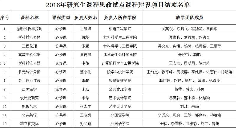 经各学院试点课程申报后,学校遴选出12门课程作为首批研究生专业课程思政改革试点课程。两年来,入选的课程教学团队全体成员,从德育目标、思政映射与融入点、教学方法、教学成效等多个维度,不断进行课程的建设与完善,课程建设取得重要成效。此次经学校评审组评审合格,顺利结项。