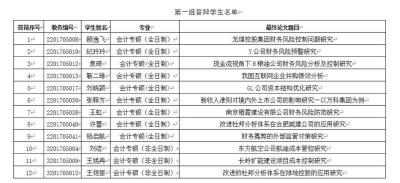 毕业论文存在较大争议,需要与毕业论文审核工作组直接沟通的、拟参加2020年上半年硕士毕业论文预答辩的部分会计专业学位硕士毕业生。(名单由会计专业硕士毕业论文审核工作组决定)