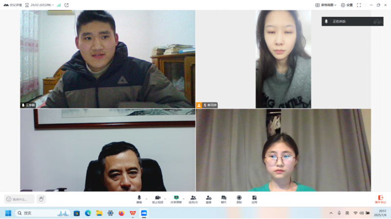 学院通讯(通讯员:王亭峰)为强化研究生论文研究学习并了解学生学术进展,张海龙教授通过腾讯会议平台召开了一次线上的学习会议,时间是2025年1月6日19:40~20:50。