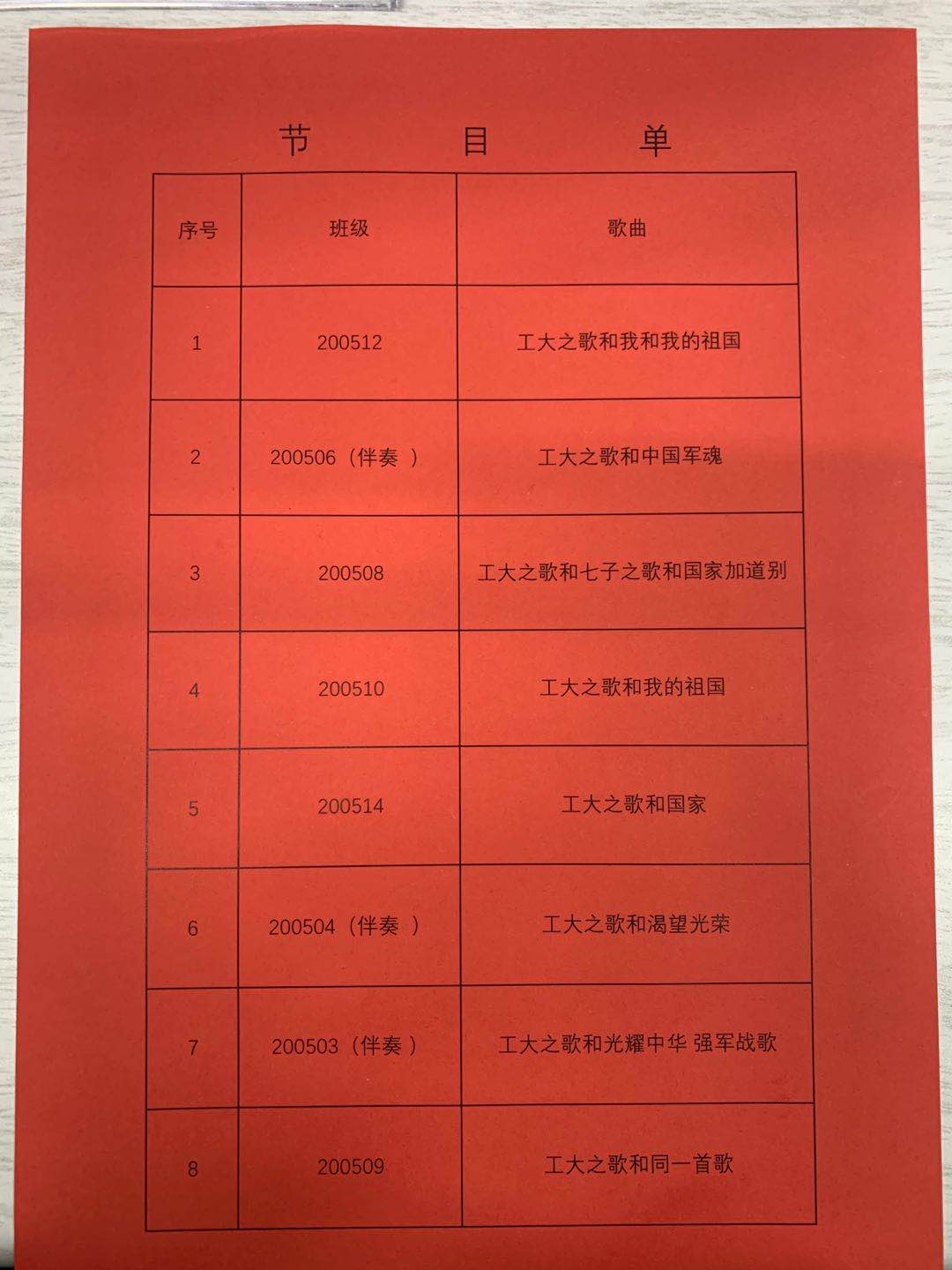 各班献上了自己准备好的红色歌曲与永利官网的校歌,200510班,200512班,200508班与200514班、班合唱的《我的祖国》,《我和我的祖国》与《国家》,各自为祖国母亲献上了一首精心准备的赞歌;200503班,200504班,200506班与200509班演唱了《强军战歌》《渴望光荣》《中国军魂》《我的祖国》等军歌,磅礴的气势鼓舞感染了在场的所有观众。
