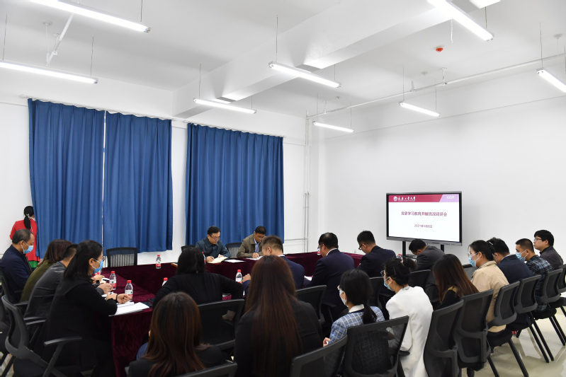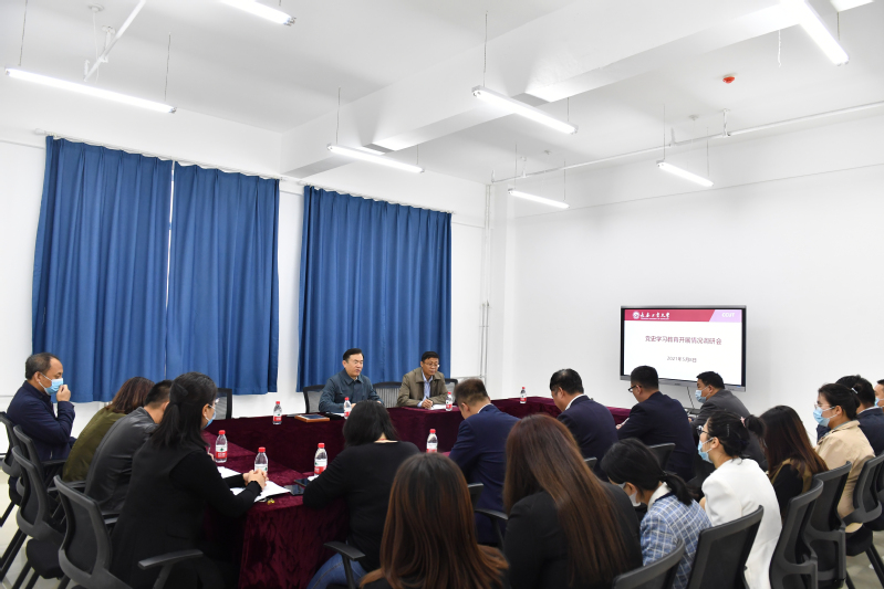 在“党史学习教育开展情况调研会”上,院长张玉智从六个结合学党史、五个聚焦转作风、四个创新办实事等三个方面对学院党史学习活动开展情况进行了汇报。党委副书记孙兆龙、副院长黄鑫昊分别从各自分管工作结合党史学习情况做了相应汇报,部分系党支部书记、主任在会上发言。