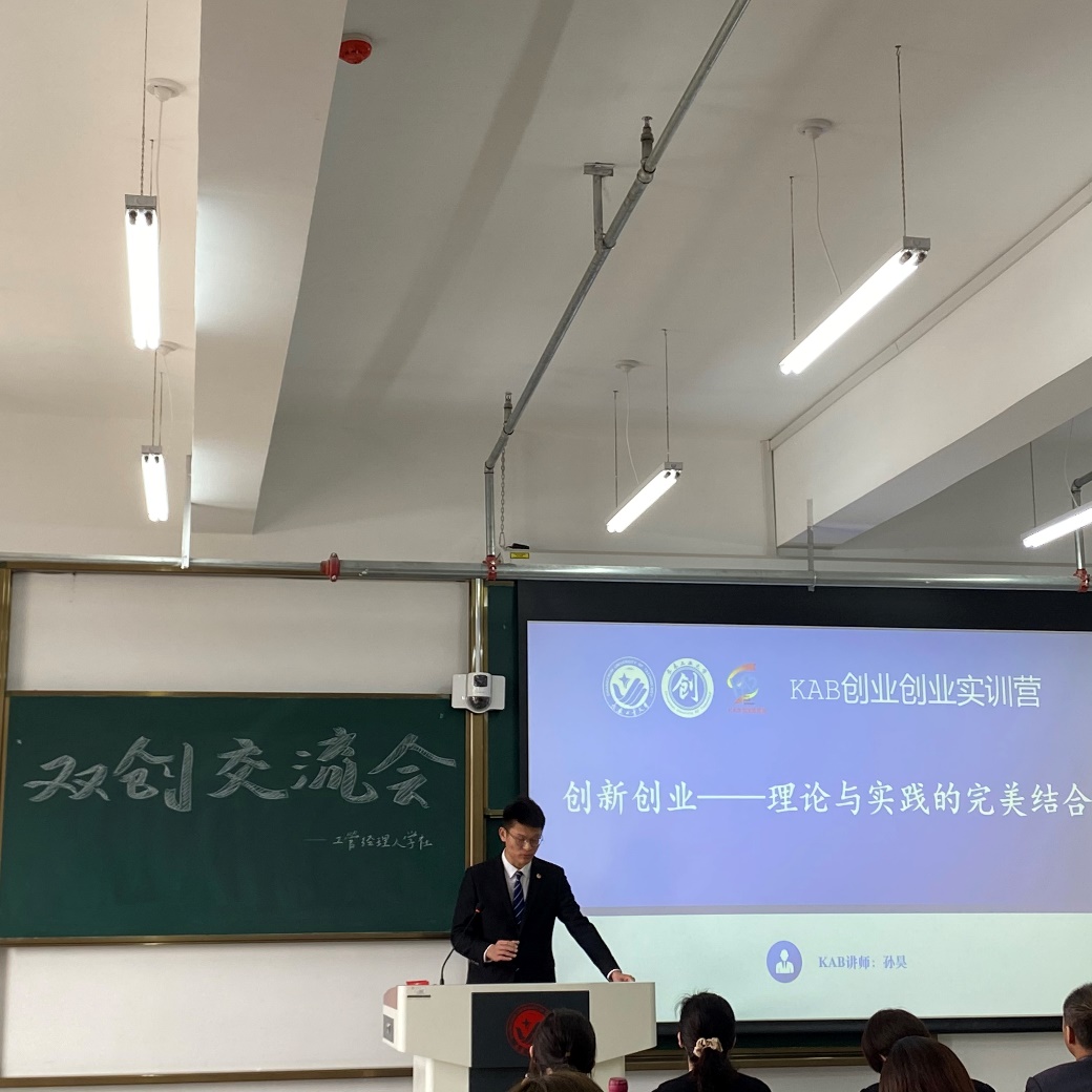 工管经理人学社副社长孙昊结合创新创业大赛相关内容向与会人员解读了大赛的赛事设置、赛事规则及赛程安排。他鼓励参赛人员相互交流,为同学们分享学习途径与学习方法,帮助同学们将理论付诸于实践,将学习内容内化为自身所得。