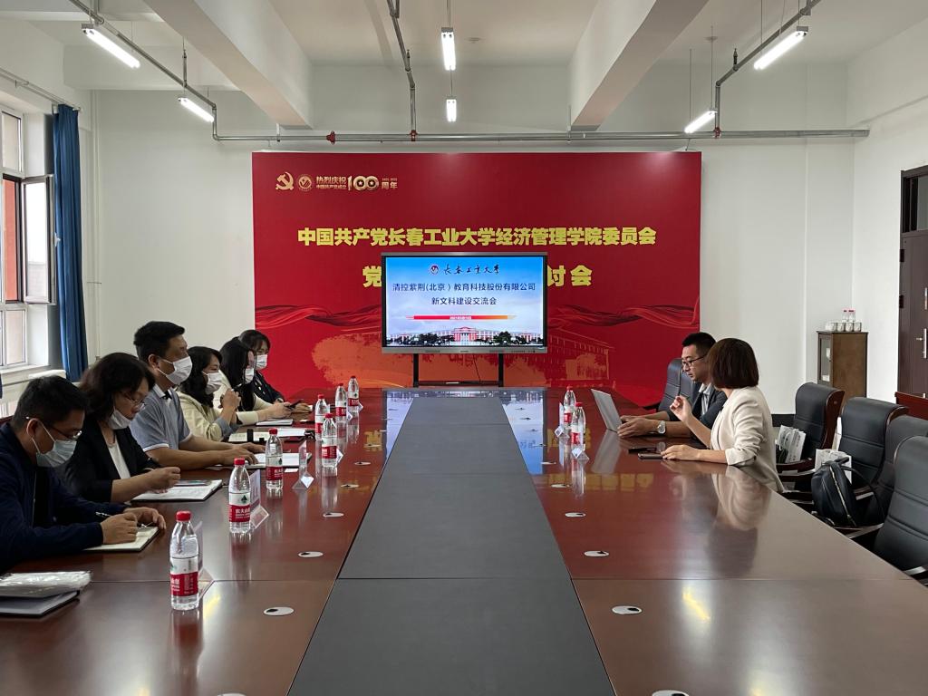 为提升探索新文科人才培养的新模式,进一步提升教育服务能力和贡献水平,9月16日上午,清控紫荆(北京)教育科技股份有限公司副总裁金梅女士莅临学院,针对新文科建设开展交流活动。yl23455永利集团副院长王涛、各系主任及MBA办公室主任杜洋老师参与了此次交流。