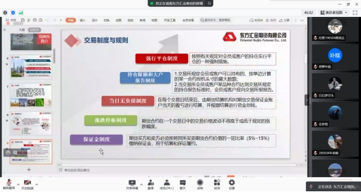 首先,东方汇金期货有限公司的讲师为同学们介绍了期货市场的形成、我国期货市场的发展现状和未来发展前景,让同学们更加直观地感受到我国期货市场的飞速发展。
