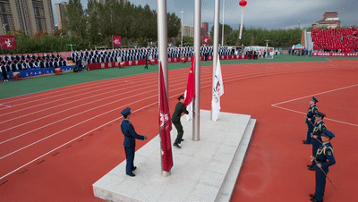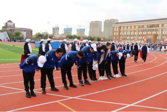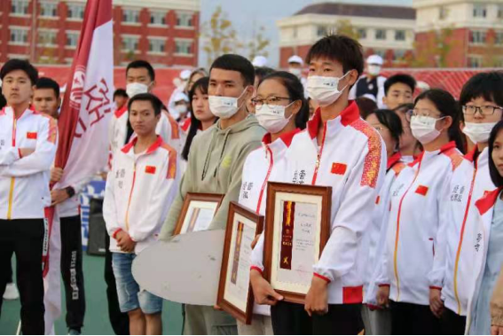 在庄严的国歌声中,国旗队开启了运动会的第一幕。