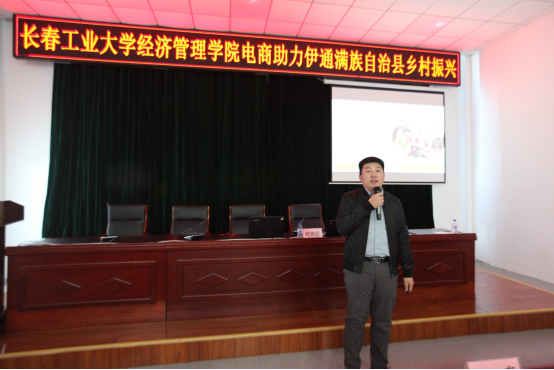 黄鑫昊致辞。首先对吉林省科学技术协会和伊通县县委、县政府给予永利官网这次“科技兴农电商助力”乡村产业振兴科学普及服务的机会表示感谢。感谢伊通满族自治县新时代文明实践中心、共青团伊通满族自治县委员会对此次培训的精心组织,也感谢长春师范大学、多点期待文化传媒的各位专家的支持。他提出此次活动将通过讲座、培训、交流等形式,与伊通县相关职能部门的工作人员、农村的基层干部、创业青年和普通农户共同提升对农村电商的认识,使农村电商成为乡村振兴、人民致富的助推器。又详细介绍了yl23455永利集团的发展历程和永利概况,学院拥有电子商务专业,创办了全国首家大学生自主经营的电商网站,2020年电商专业被教育厅评为全省一流专业。他指出学院将依托自身的教学科研优势,秉承贡献知识、培育人才、创造价值、服务社会的理念,与伊通县社会经济发展的需要同频共振,描绘学院服务地方工作的新画卷。