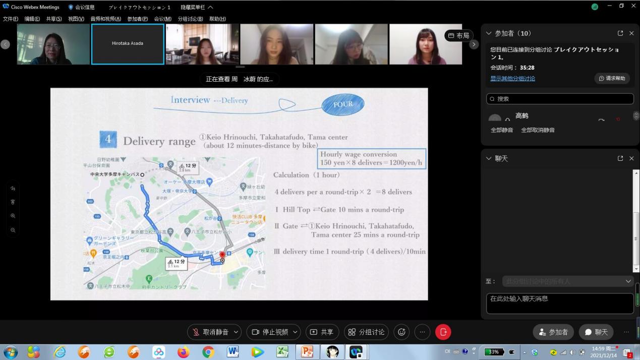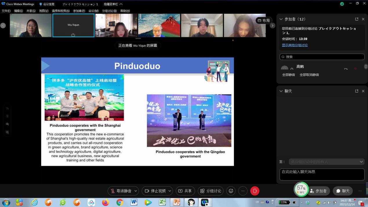 北京时间12月14日下午1:30,经济系高鹤老师带领2019级国贸专业学生团队与日本中央大学经济学部谷口教授指导的三年级研讨小组在Webex平台欢聚一堂,第二轮第二场中日本科生线上学术交流会如期开展,这也是两位老师第二次联手举办的系列国际交流活动,取得圆满成功。