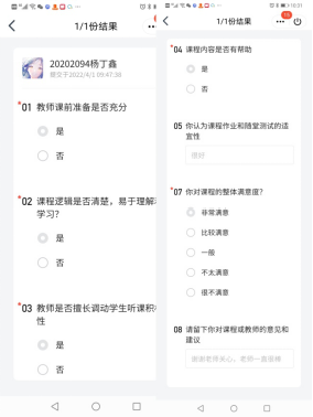在每节课后,屈老师会把本次课录播视频分享到班级QQ群,方便学生根据需要反复观看,不断完成知识内化。根据当天授课重点在线发布课程作业、投票选题,提高学生课后的参与度。与此同时,屈老师定期通过QQ群在线发放调查问卷收集学生对于授课过程的反馈意见,不断对教学设计进行反思,致力于持续提高教学效果。
