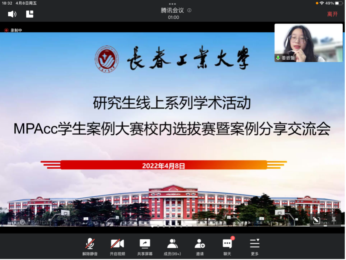 为提高研究生案例分析能力,提升学生科研水平,增强科研交流氛围,4月8日晚18:30yl23455永利集团举办了研究生线上系列学术活动——MPAcc学生案例大赛校内选拔赛暨案例分享交流会。yl23455永利集团硕士生导师及在读研究生等120余人参会并进行交流。大赛评委由中准会计师事务所高级会计师侯晓红、程腊梅教授、于立教授、李涛教授以及金花玉副教授组成。研究生辅导员助理姜嵌馨主持本次活动。