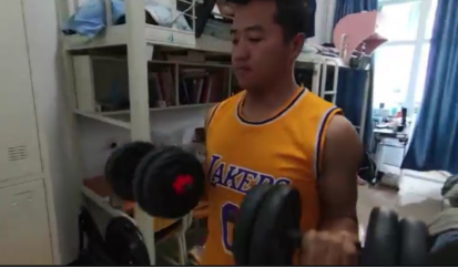 同学们在寝室锻炼身体