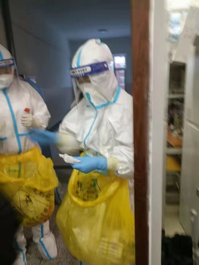 李佳蔚老师所住小区共9栋住房,其中两栋有阳性确诊病例。她第一时间向社区网格长报道,在物资不充足、无法提供防护服的情况下,听从社区组织安排,积极投入上门发放新冠病毒抗原检测试剂盒志愿服务活动。本着“不落一户、不漏一人”的原则,带着居民统计表、抗原检测试剂盒,深入小区的每一楼层每一门户。同时配合社区统计物资、进行邻里互助,力所能及的发挥党员作用。