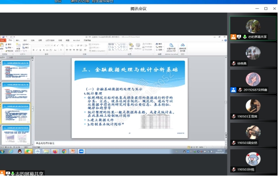 从4月25日开始,全面在线教学活动进入第九周;全院教师全身心投入一线教学与科研活动;线上教学平台使用愈加熟练,教师充分利用平台各种功能,通过在线视频授课、课堂抢答、聊天等方式强化了师生互动,课堂气氛活跃,增进了师生感情,老师在授课过程中特别注重把当下的疫情联系起来,帮助学生们树立战胜疫情的信念,学院各级领导频繁深入线上课堂进行听课巡课,稳固了线上教学的正常运行,保障了线上教学质量。
