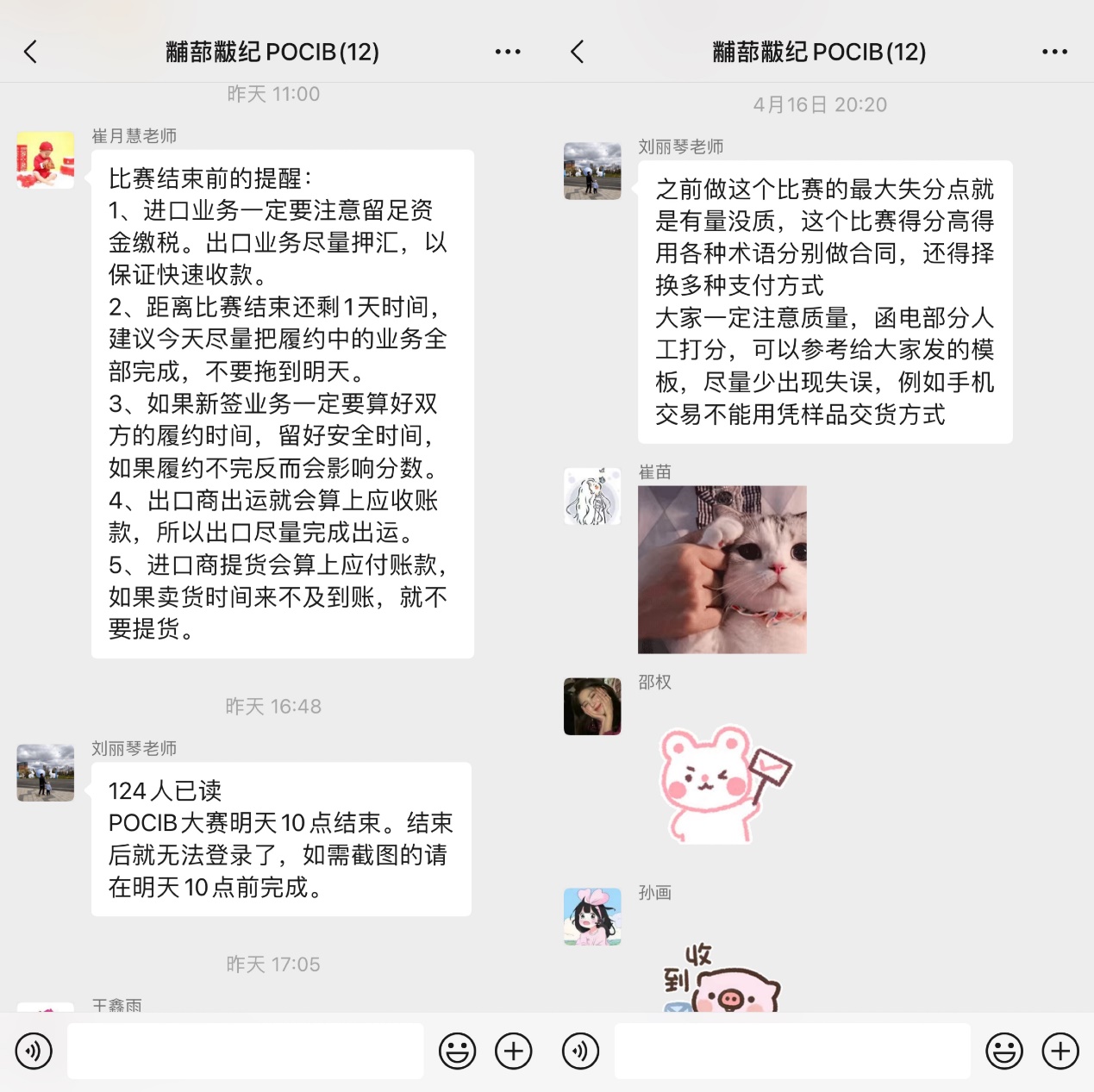 由中国国际贸易学会主办的“第十一届POCIB全国外贸从业能力大赛(春季赛)”于2022年4月29日上午10时圆满结束。POCIB全国外贸从业能力大赛是国内“外经贸”相关专业领域参赛人数最多,最有影响力的大赛。此次比赛共有184所院校、373支队伍、共计3730名选手参加。我校参赛的黼蔀黻纪队,在崔月慧老师和刘丽琴老师的指导和陪伴下,经过小队成员半个月的努力,获得了POCIB本科五站团队三等奖以及李佳欣同学获得日本站个人三等奖的成绩,并且全体成员的总成绩都是优秀水平。黼蔀黻纪这个队伍名字也深有寓意,它代表了锦绣美好的年代,也象征了我们广大青年学生对于这个时代的美好祝愿。