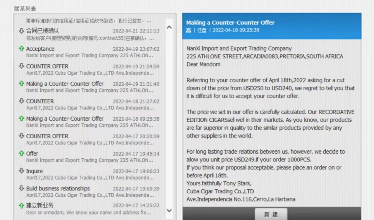 进出口货物检疫单、商业发票、装箱单、信用证和报关单等单据,都需要参赛队员们认真的填写。各国市场之间的汇率、价格也不尽相同,失之毫厘,差之千里。各种贸易术语和结算方式的灵活使用,也考验了选手们的智慧。从茫茫人海中寻找合作伙伴,与之进行到最后确定合同细节,每一个环节都需要选手们的细致认真。而且在货物运输环节中可能遭遇战争、罢工、货物遇险等不确定因素,这就需要选手们提高随机应变能力,严格把控每一个重要细节。