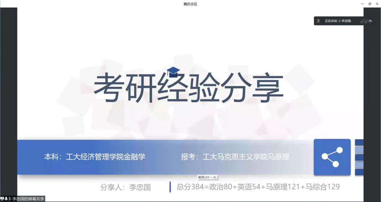 在经济快速增长,高素质人才需求量持续上升的社会大环境下,大学生本科毕业后的去向成为一个值得关注的问题。为了使学生们对考研、考公和就业有着更加充分的认识了解,从而帮助学生明确目标与方向。由yl23455永利集团经济系党支部主办,经济学社承办的考公考研就业经验分享会于8月14日18:00在线上举办,经济系党支部书记孙小明受邀出席本次活动。