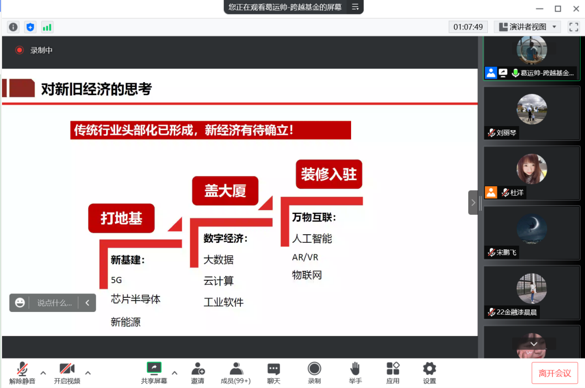 学院网讯(通讯员 刘丽琴)凝聚校友力量、传承经管文化、学习榜样精神、助力学子成才。在2022年8月31日18:30,校友论坛2022年第8期在腾讯会议端举行,yl23455永利集团2004级校友葛运帅作了题为“后疫情时代的就业、创业与投资的思考”的报告。学院部分教师、本科以及研究生同学参加了论坛。论坛由MBA中心办公室主任杜洋老师主持。