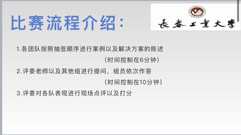 首先主持人介绍比赛规则。本次比赛分为经济类案例分析和管理类案例分析。每组按照已经完成的抽签顺序进行6分钟的案例陈述,分别由4名组员从案例内容,案例中所发现的问题,如何解决问题以及解决方案的现实意义不同角度进行汇报,然后其他组成员进行提问。