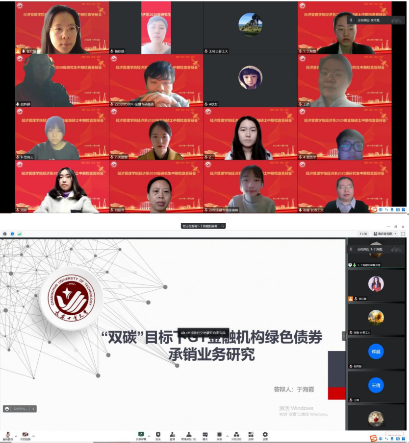 此次答辩会共11位学生参加答辩,经过答辩组及学们的共同努力,经济系2020级金融硕士与应用经济学硕士学位论文中期检查答辩工作圆满完成,为提高学位论文质量打下了坚实基础。