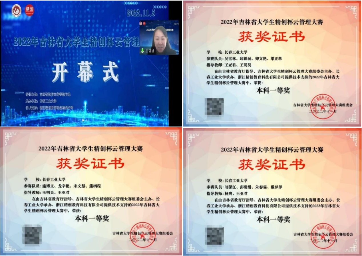 学院网讯(通讯员 赵晨菲)2022年11月5日,由吉林省教育厅高等教育处作为指导单位,yl23455永利集团承办,浙江精创教育科技有限公司提供技术支持的吉林省大学生精创杯云管理大赛圆满落下帷幕。由工商管理系王亚君、王明昊、杨爽三位老师指导的三支参赛队伍在本次大赛中取得了三项一等奖的好成绩。