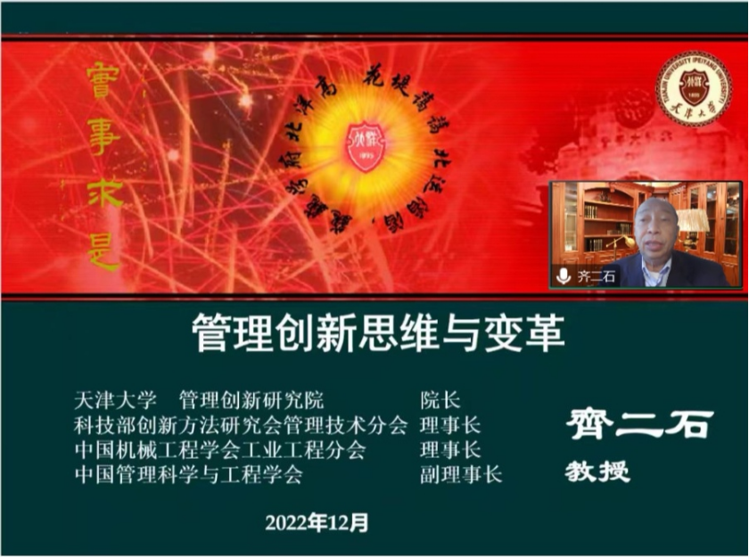 主旨报告环节,天津大学管理创新研究院院长、吉林省汽车精益管理学会总顾问齐二石教授作题为《管理创新思维与变革》的报告。