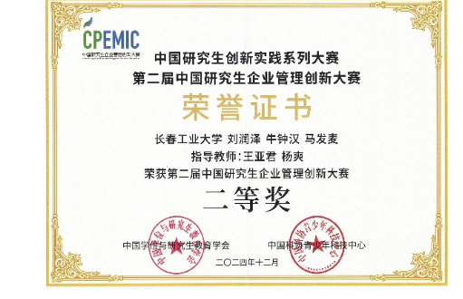 (通讯员 韩蕊)2024年12月1日,第二届中国研究生企业管理创新大赛全国总决赛在成都隆重举行。我院MBA学生刘润泽、马发麦、牛钟汉组成的“启航扬帆”代表队在王亚君老师的指导下,经过初赛、复赛的激烈角逐后成功晋级全国总决赛,并凭借在总决赛中的优秀表现,最终荣获MBA组全国总决赛二等奖的好成绩。本次参赛得到了学校研究生院的大力支持。