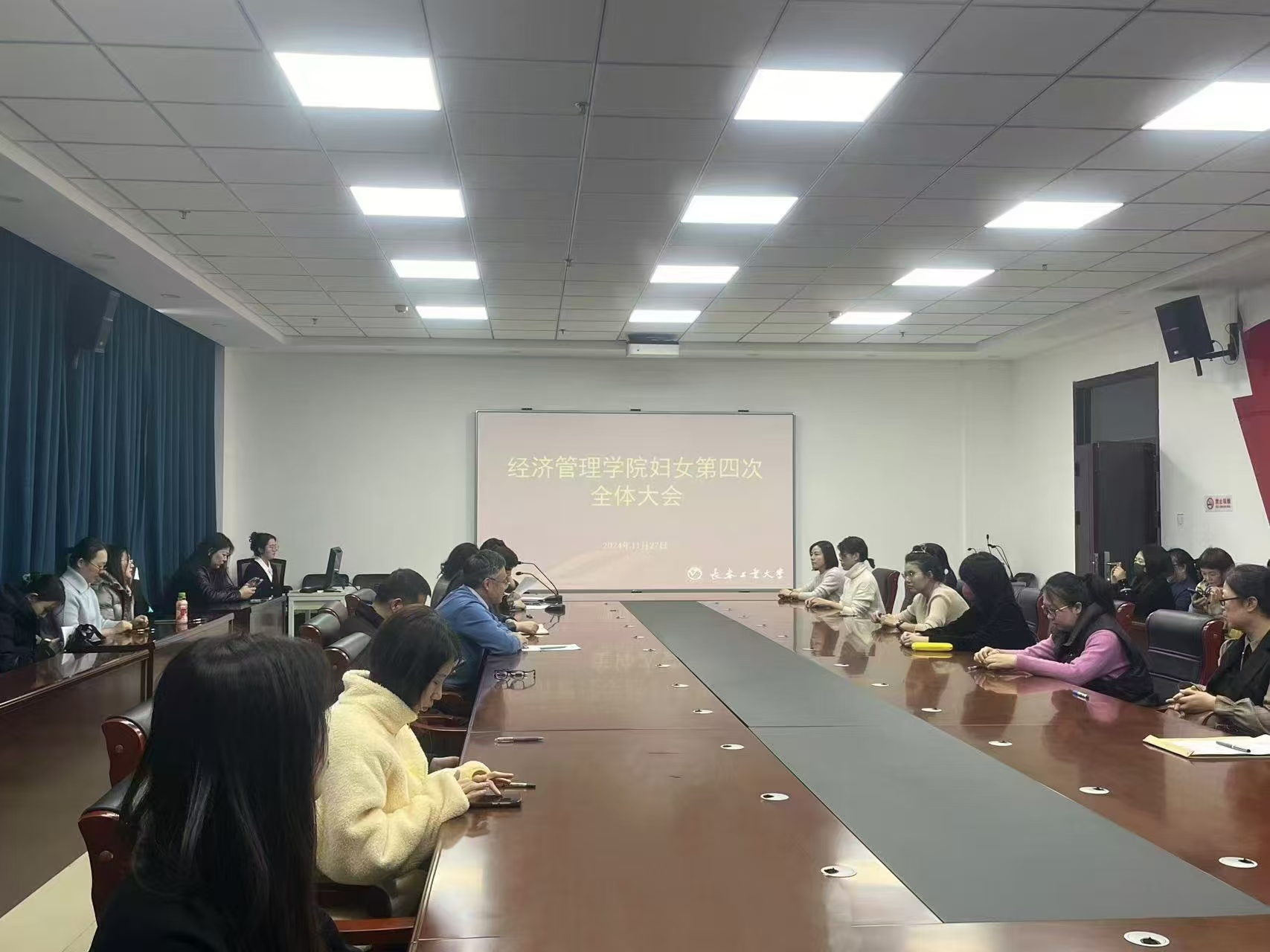 yl23455永利集团于2024年11月27日在北湖东区主楼521会议室召开学院妇女第四次全体大会,学院领导班子成员出席会议,学院全体女教工参会,会议由学院专职组织员房琬婷主持。