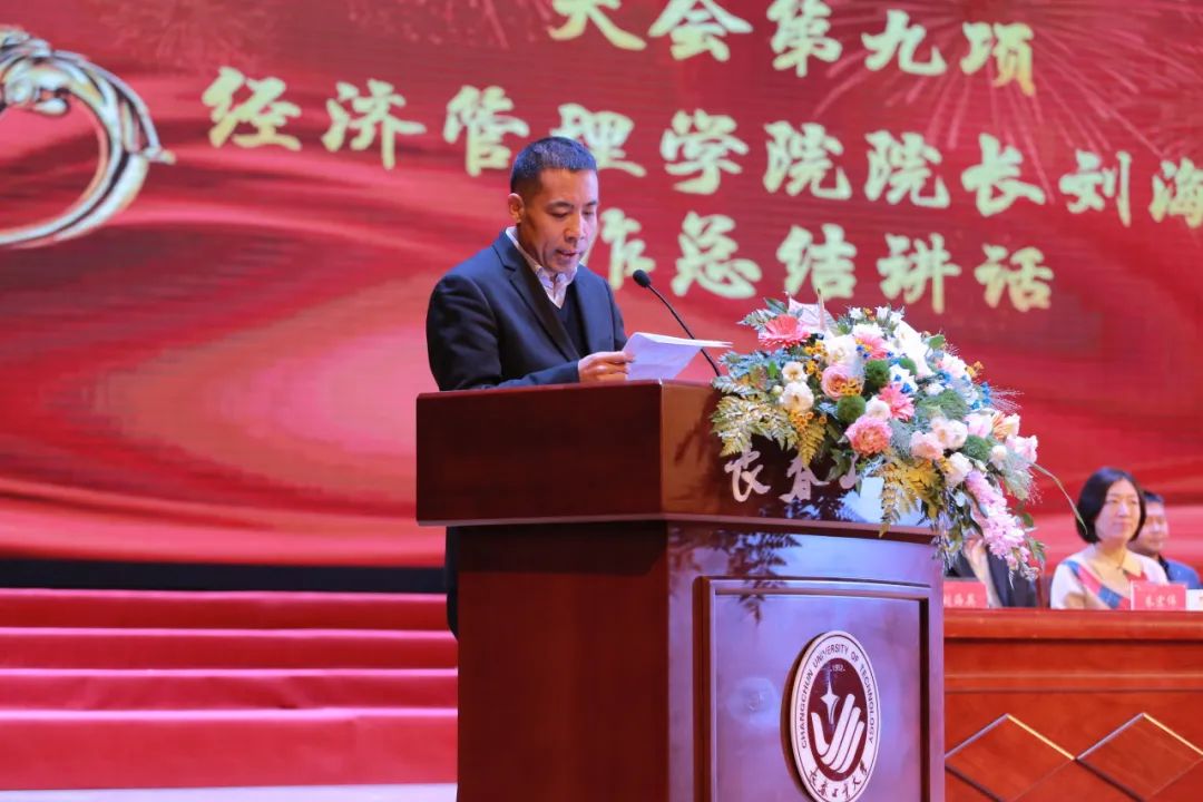 yl23455永利集团(创新创业教育学院)党委书记朱宏伟宣读关于表彰yl23455永利集团学风建设工作先进集体和优秀个人的决定,本次大会表彰双十佳大学生、桃李芬芳奖等16个奖项,共计167名师生受到表彰。与会领导为获奖师生颁奖,yl23455永利集团院长刘海英进行总结讲话。