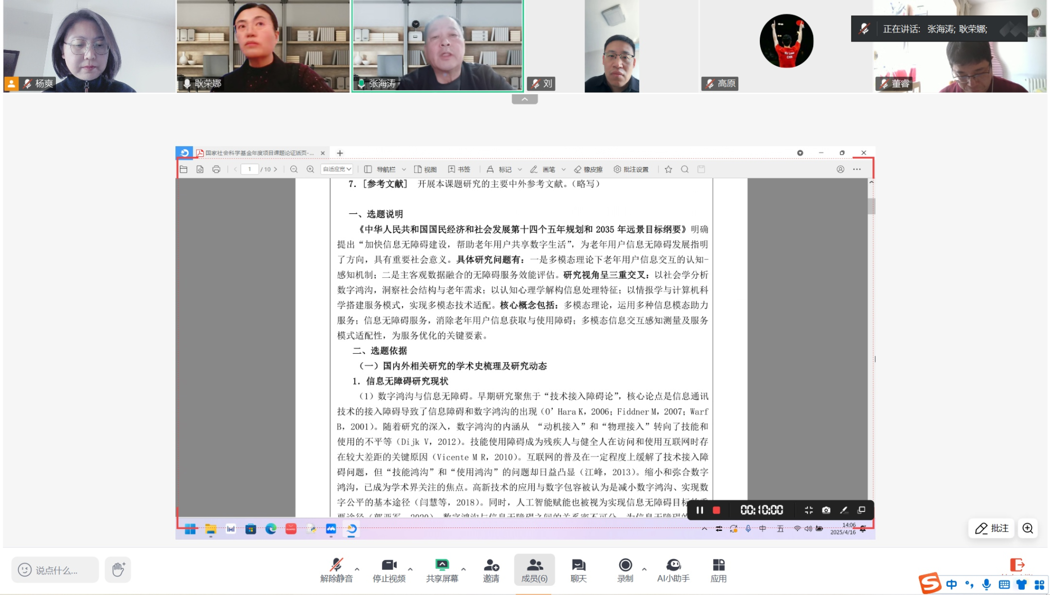 为进一步提升教师科研能力,提高国家社科基金项目申报质量,近日,我院组织第四轮国家级项目申报专家辅导会。会议按学科分组,特邀吉林大学三位知名专家开展线上一对一指导。杨爽院长主持会议。