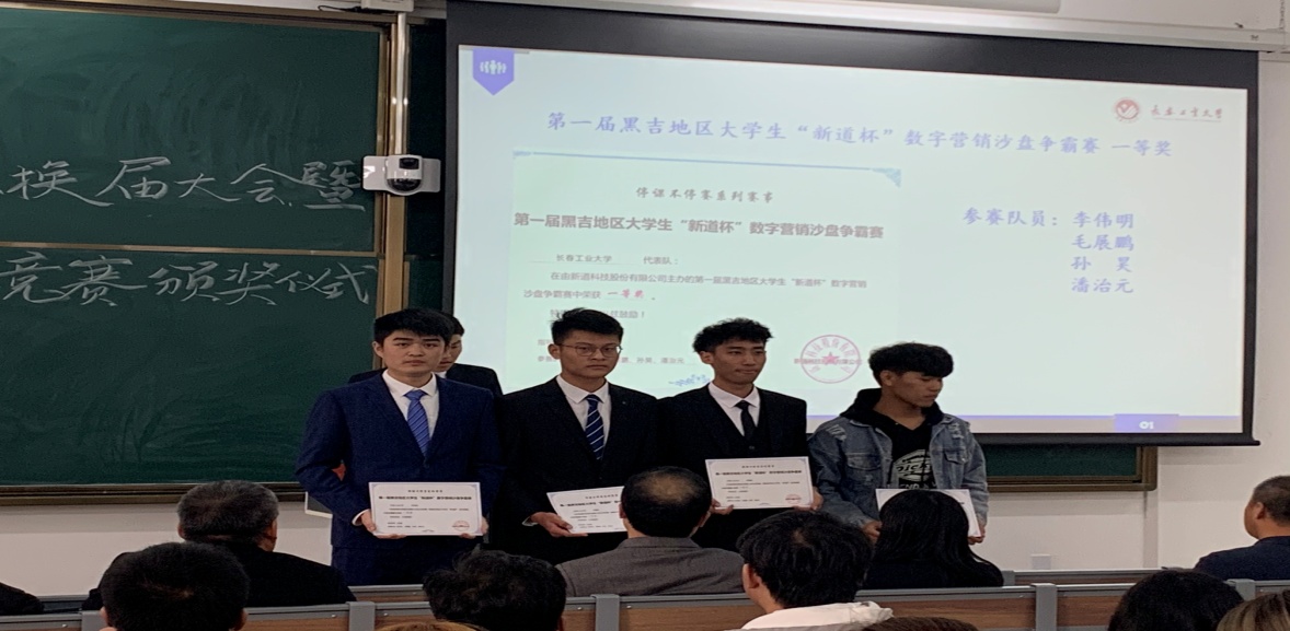 黑吉地区大学生“新道杯”数字营销沙盘争霸赛一等奖获奖同学领奖