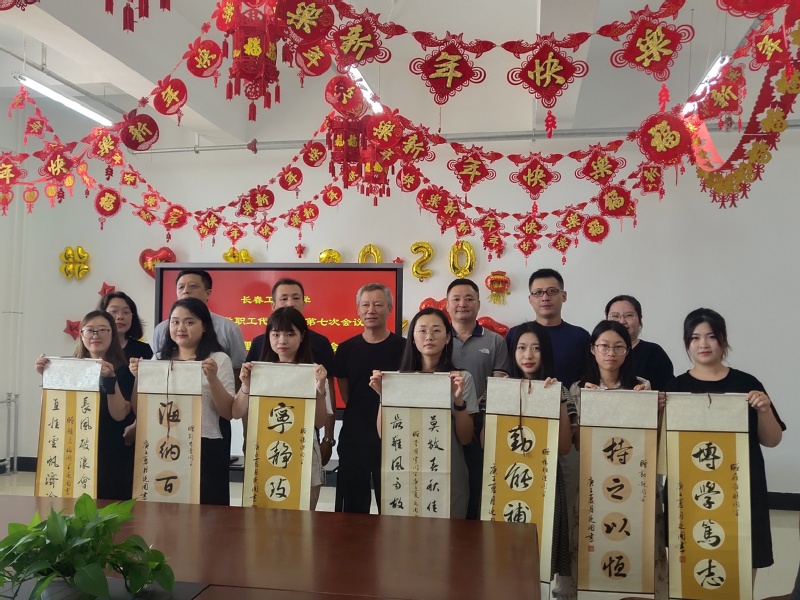所有参会老师为毕业生代表赠送了由知名书法家书写的毕业赠言和印有学院标志的水杯,同学们脸上洋溢着惊喜和感动。最后,全体参会老师在学院背景墙合影留念,大家依依惜别。