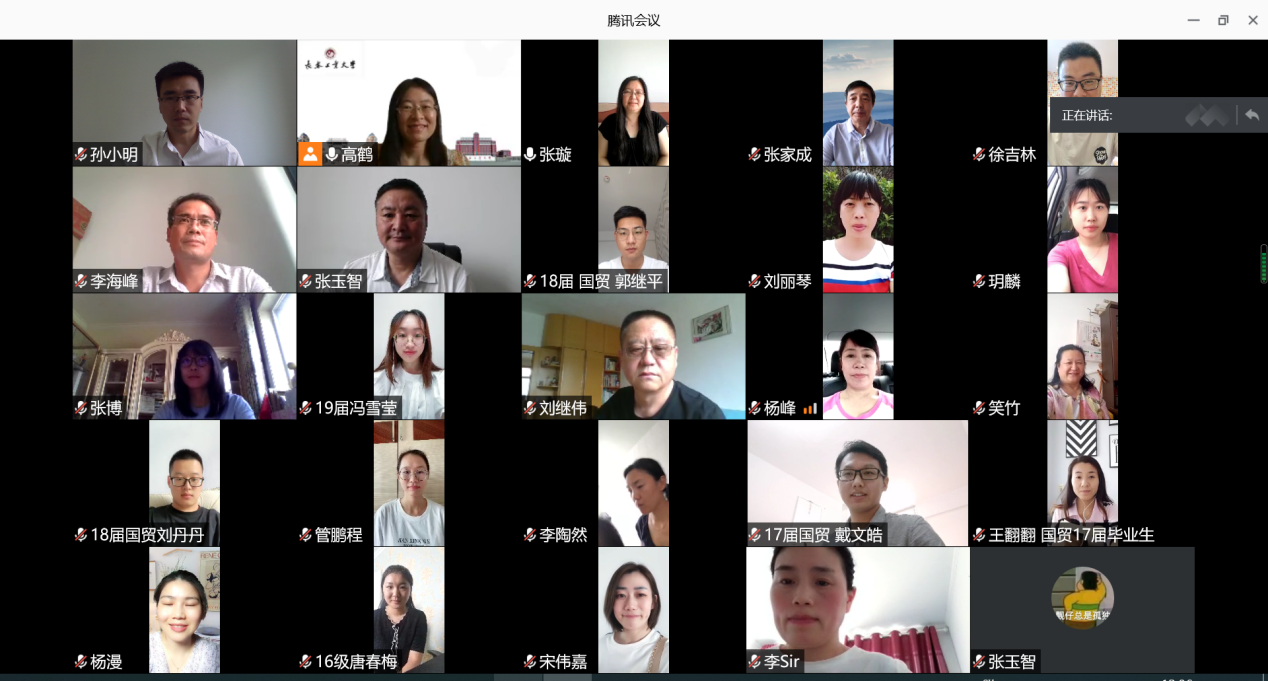 8月23日,天高云淡、秋高气爽。上午10:00整,经济系人才培养方案修订线上研讨会如期拉开帷幕。遍布祖国各地,就职于大型外贸公司、商业银行、保险公司等领域的15名优秀毕业生代表应邀参会。yl23455永利集团院长张玉智、副院长张家成、经济系主任张璇、党支部书记孙小明以及部分专业教师参加了研讨会。会议由经济系副主任高鹤组织并主持。