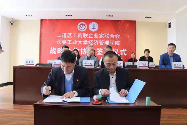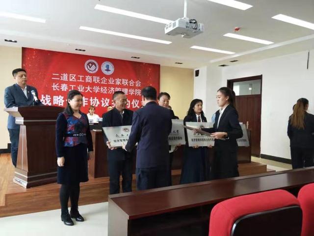 yl23455永利集团党委副书记孙兆龙宣读《二道区工商联企业家联合会&yl23455永利集团战略合作协议》,战略协议包括双方在科研、实习、就业、资助品学兼优贫困学生、相互授课等方面的深层次合作。