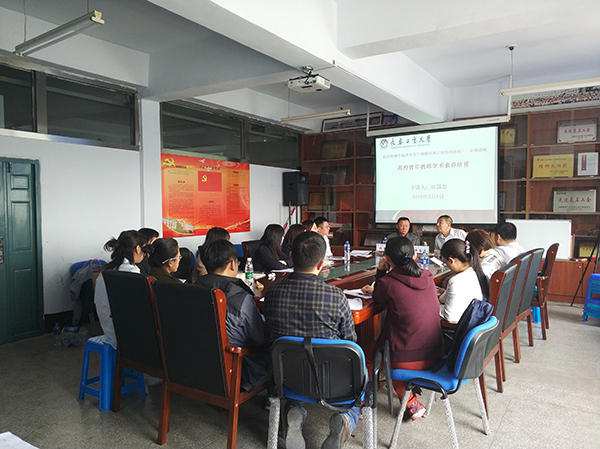 杨文龙致欢迎词,并详细介绍了侯国忠副巡视员的工作经历。侯国忠以“高校青年教师学术素养培育”为题,结合自身经历,分别从怎样选好题、怎样提高逻辑思维能力、怎样做好日常积累三个方面与青年教师展开交流,并对每一位青年教师的项目申请书进行了一对一辅导,从题目凝练到内容设计都提出了详细修改意见。