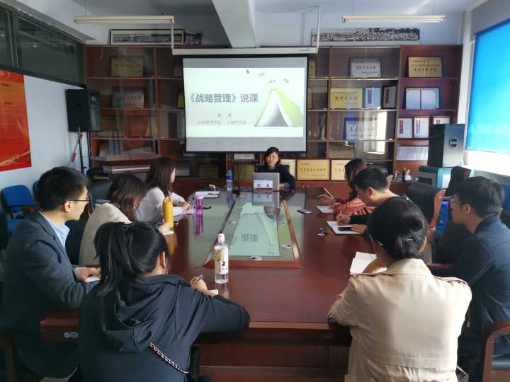 杨爽老师就《战略管理》课程进行了说课示范。从课程介绍、教学分析、教学策略和教学反思四个方面讲述,层层递进,使青年骨干学习到“说课”的方法和精髓。同时,杨爽老师根据多年教学经验与青年骨干教师分享交流心得,杨老师说:“教学的前提是热爱,热爱是最好的天赋;课前准备要真诚,真诚胜于完美;课后要虚心反思,改进提升。”青年骨干教师在此次学习中深受启发,有所反思,相信在今后的教学工作中将更加“认真”和“真诚”。