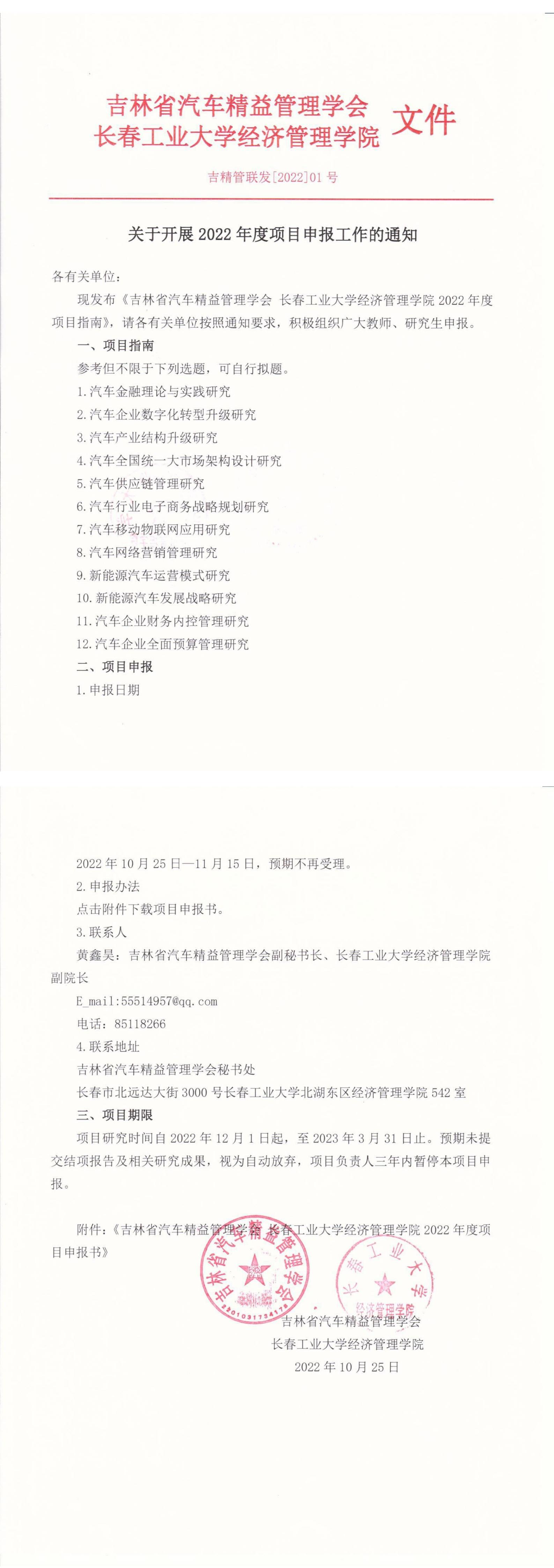 关于开展2022年度吉林省汽车精益管理学会项目申报工作的通知