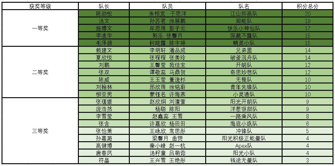 成功并不是终点,失败也不是终结,只有勇气才是永恒。任何竞争,我们都必须勇于挑战,不怕失败,将勇气作为撬动未来的支点,敢于挑战人生中的一切不可能,创造属于自己的璀璨人生。赛前高频次的训练锻炼了同学们坚定的意志,赛时摩拳擦掌的紧张氛围让大家在思维碰撞间提升了自我创新意识,团队协作在培养合作意识的同时也为大家加深了友谊。通过竞赛,我们在竞争中探寻真理,在合作中体验成败。希望同学们在竞赛中有所收获,希望胜出的同学们再接再厉,预祝同学们在接下来的省赛国赛中取得优异成绩。