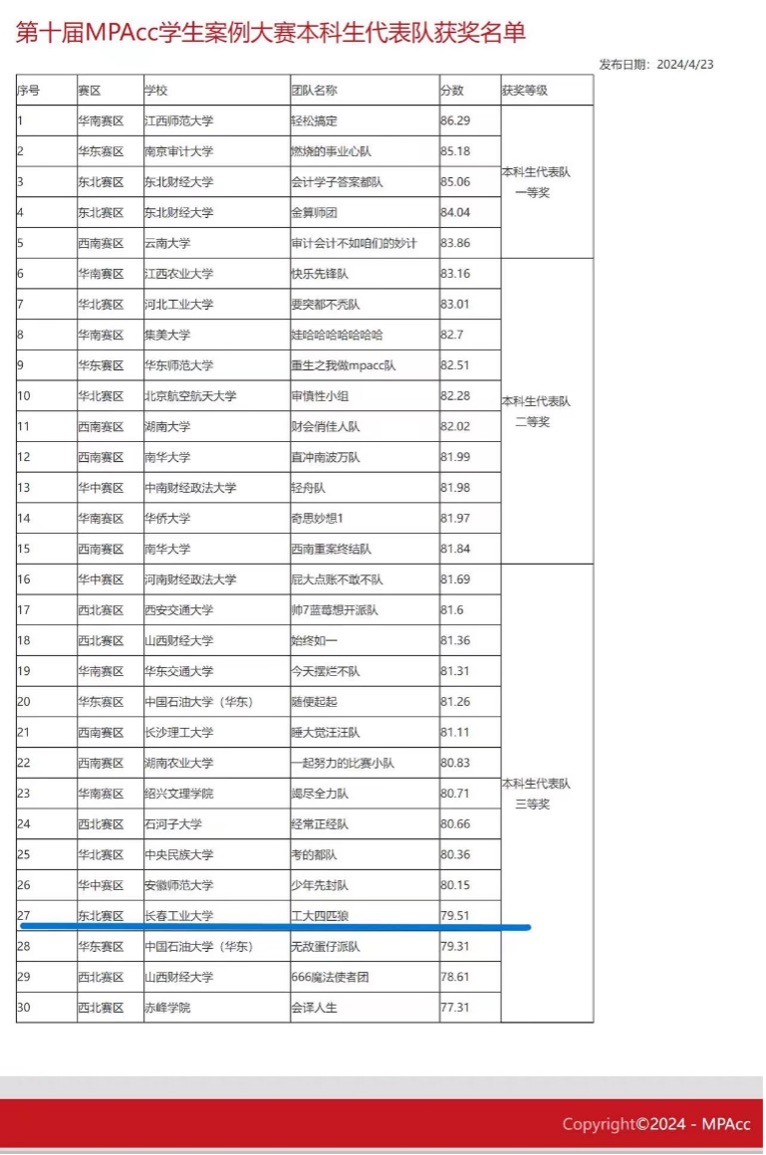 学院网讯(通讯员 李亚春)在第十届中国MPAcc案例大赛中,我校两支代表队分别取得东北赛区第三名和第九名的优异成绩。由纪晶华老师指导,李亚春、王珊珊、于雅静、王瑞四位会计学专业同学组成的“工大四匹狼”队伍取得本科组全国三等奖,实现历史性突破!