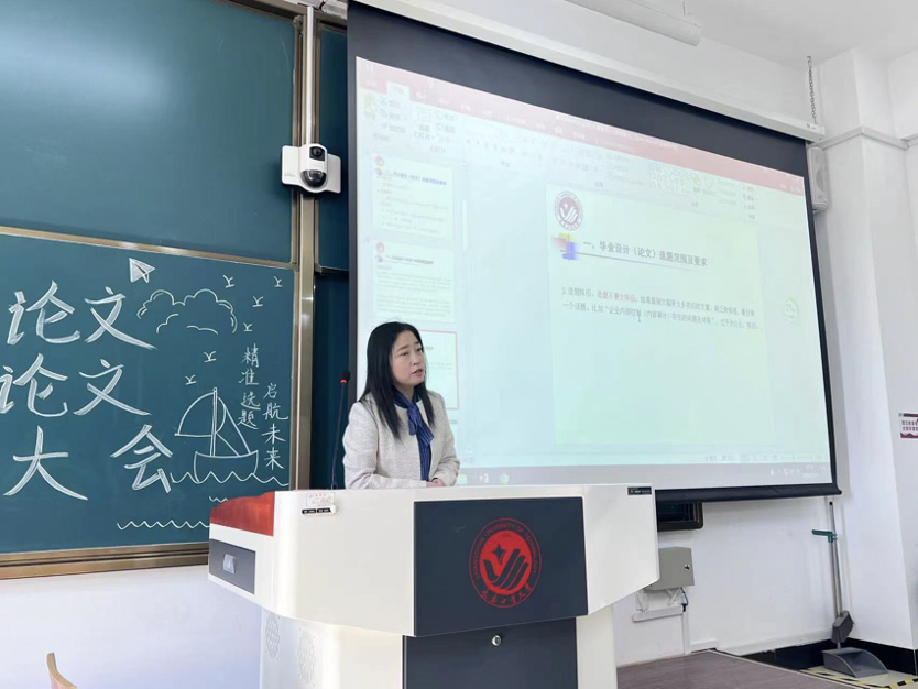 会上,高媛老师详细介绍了毕业论文的撰写要求和方法。从选题的技巧到文献检索的途径,从研究方法的运用到论文结构的组织,深入浅出地讲解让同学们对专业论文的写作有了更清晰的认识。教师们鼓励学生要勇于探索,以严谨的态度对待每一个环节,力求写出高质量的论文。