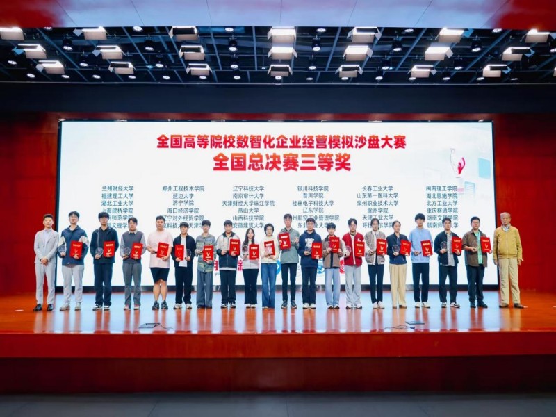 校园网讯(通讯员 陆圆圆)“数智领航企业经营,实战锤炼青春力量”。由中国商业联合会、新道科技股份有限公司联合主办、南京航空航天大学金城学院承办的第二十一届全国高等院校数智化企业经营沙盘大赛全国总决赛于2025年10月18日成功举行。我校参赛队伍展现出非凡实力,最终取得国家级三等奖的好成绩。
